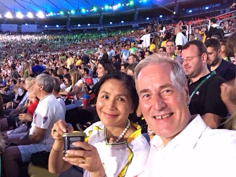 一周前,我和雪琳獲得了人生中最重要的榮譽之一:國際奧林匹克委員會主席托馬斯 ·巴赫親自邀請雪琳成為里約奧運火炬手,將奧運圣火傳遞200米。誠然,這段傳遞也許并不是那么風光,道路周圍景象蕭索,但很快熱情洋溢的海外華人朋友們和支持者們就站滿了道路兩旁;誠然,火炬傳遞只持續了幾分鐘,但我們與至少另外一萬兩千名火炬手共同分享了這一榮耀。無論是在奧林匹亞的赫拉神廟,還是在里約,能夠參與傳遞奧運圣火都是無上的光榮,我們將永遠難忘這一段經歷。2012年為了宣傳奧林匹克休戰,我從希臘奧林匹亞徒步走回到倫敦,這次為了宣傳奧林匹克休戰以及為聯合國兒童基金會募集善款,我從布宜諾斯艾利斯徒步走到里約,雪琳總是無私地支持我每一步的行動,這項殊榮對她而言再合適不過了。